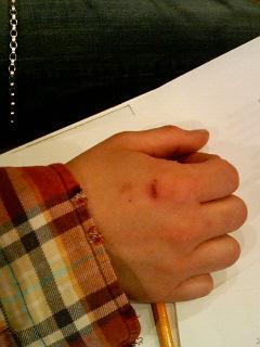 いひひ。レアじゃん? ケガしてる手ぇ。