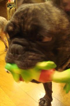 あっ・・・でも、 お口にかえるさんくわえてるでつ・・・。