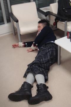 完璧に床に寝てしまってるねん。