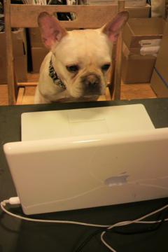 パソコンの前に座ってまつ。