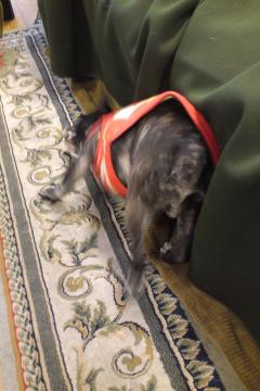 わっ!ジュニアが来たで! ソファーの下に逃げてみるわ! ほな、またな!