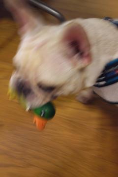 やくるとぱぱがきのうとってくれた あひるのおもちゃ!