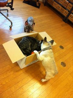 デビット、箱の中に入ってる