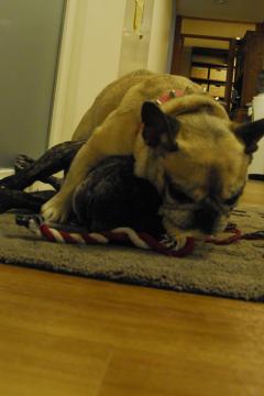 きょうはままと、つなひきでしゅ・・・。 つなひき、だったんでしゅけど・・・ ちがうあそびになったみたいでしゅ。