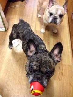 でびはじょうずにおもちゃをくわえられるでしゅよ。
