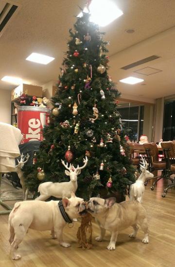 今日はクリスマスツリーの前で一緒に遊びマシタ。