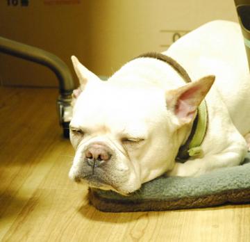 お昼寝っていつでも気持ちいいでつよね・・・ 今日のお布団は少し小さいでつ。 もうちょっと大きかったらゆったり眠れるでつね。 お布団間違えたでつかね? 誰か新しいお布団持って来てくれないでつかね・・・